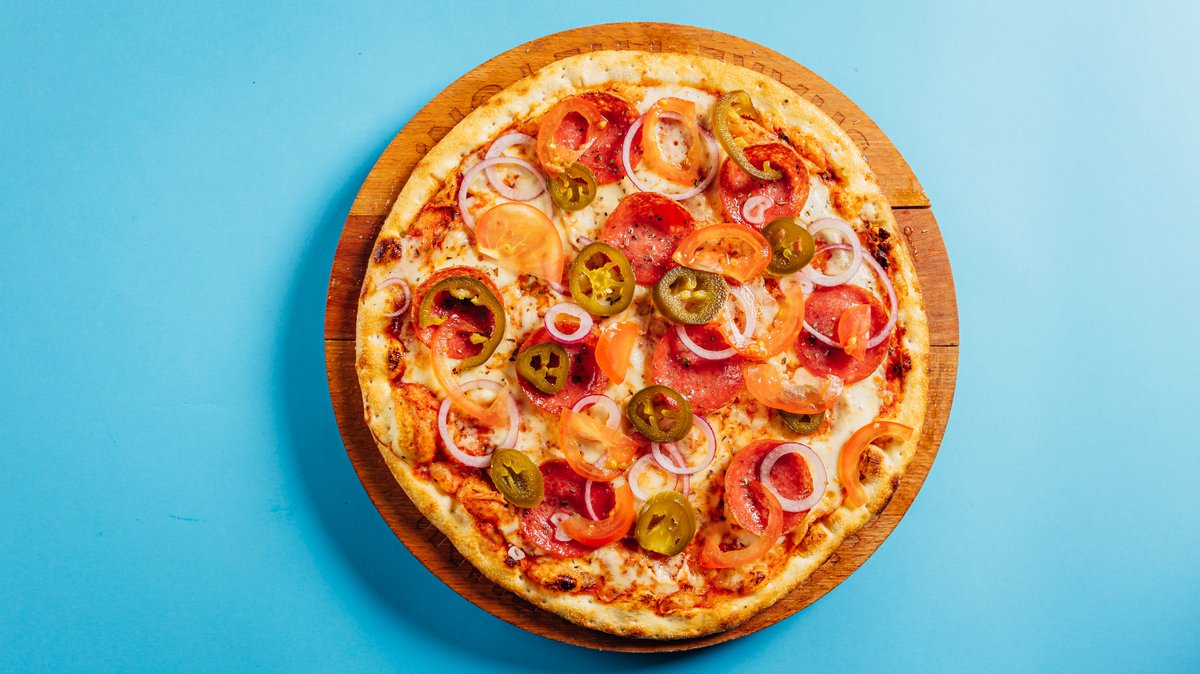 Tomātu mērce, Siers, Salami, Sīpoli, Svaigi tomāti, Halapenjo, Lociņi, Čili pārslas, Oregano