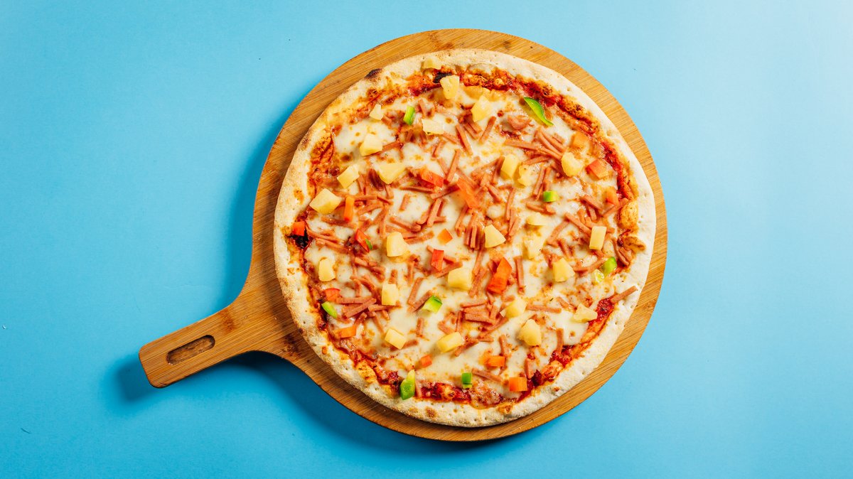 Tomātu mērce, Siers, Šķiņķis, Ananasi, Paprika, Oregano