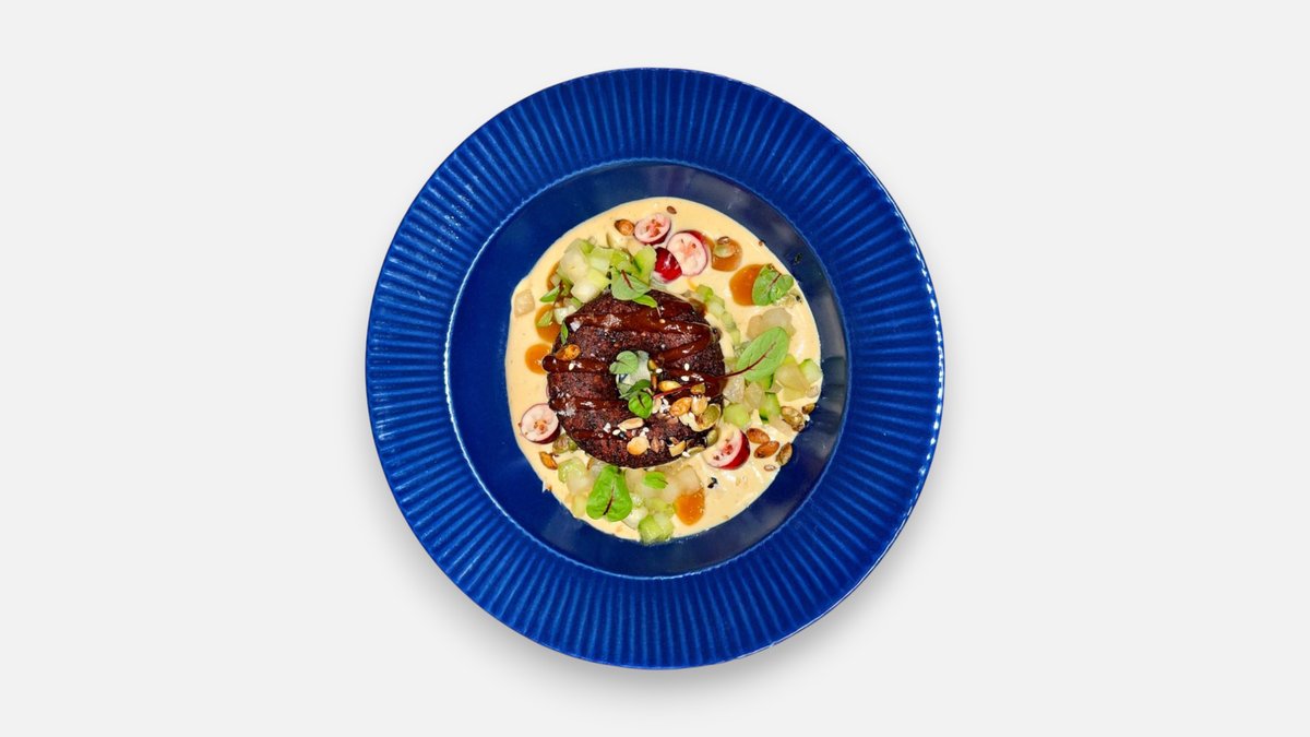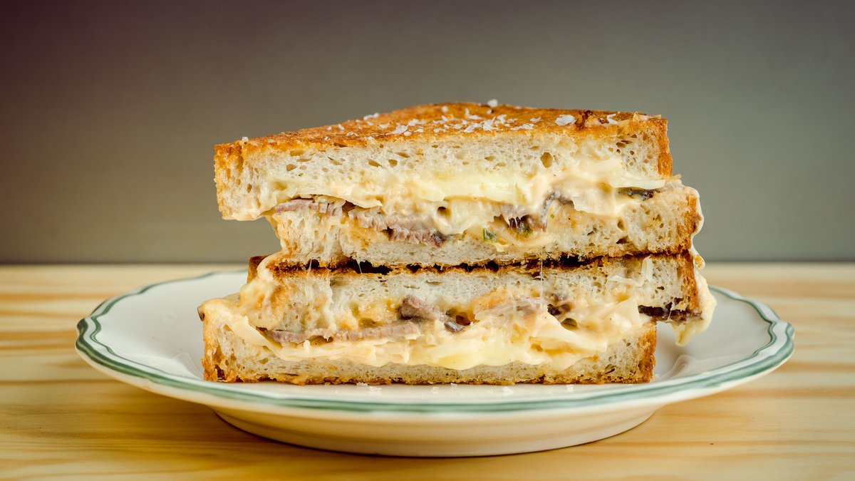 Svaigi cepta ciabatta tostermaizes formā, gauda siers no svaigpiena, jaunpils klasiskais siers, sviests, liellopa briskete, svaigi kāposti, kimči paštaisītā majonēze un maldon jūras sāls.