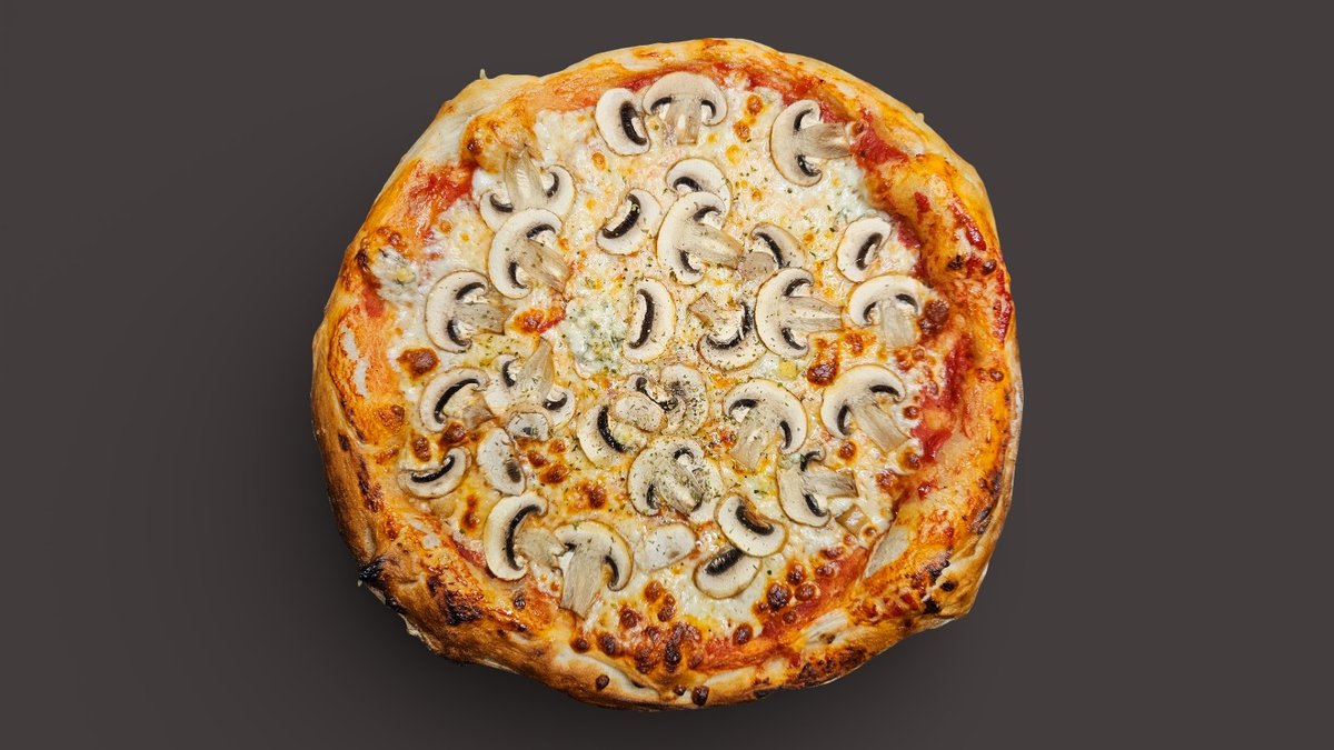 Picas mērce, Mozzarella, Šampinjoni, Zilais siers, Oregano, Garšaugu eļļa