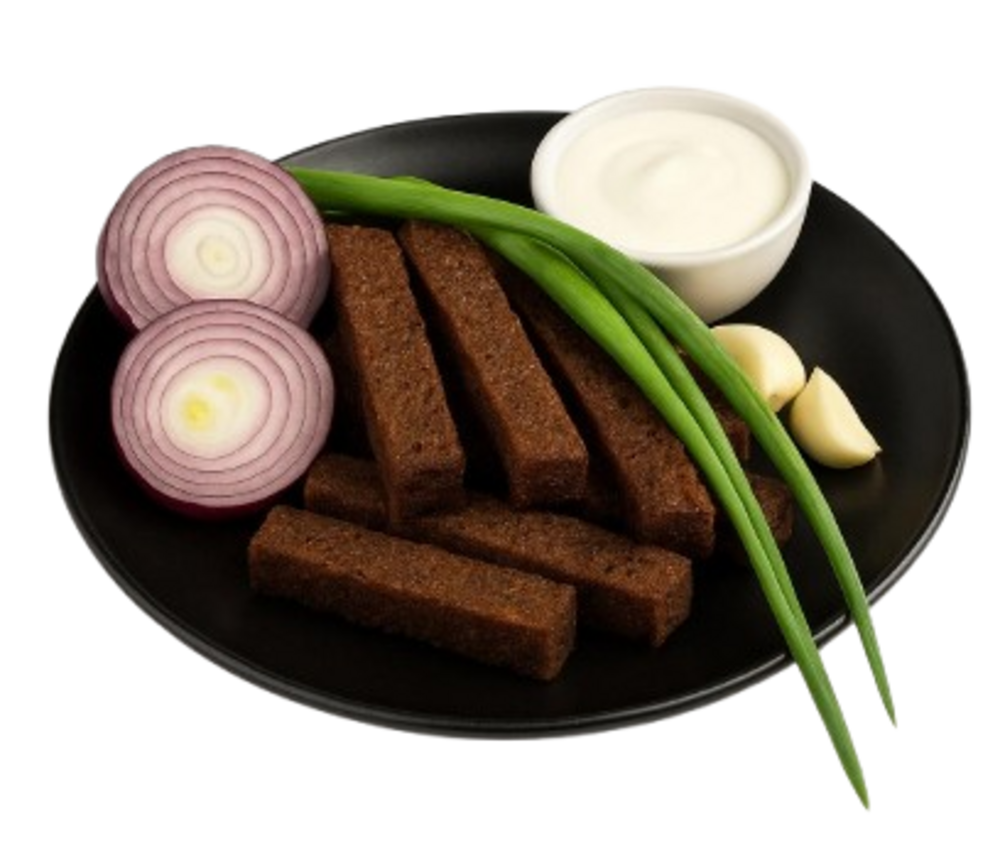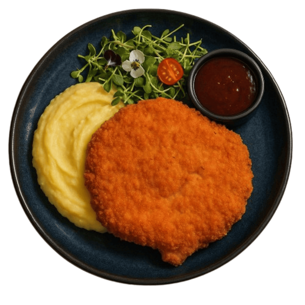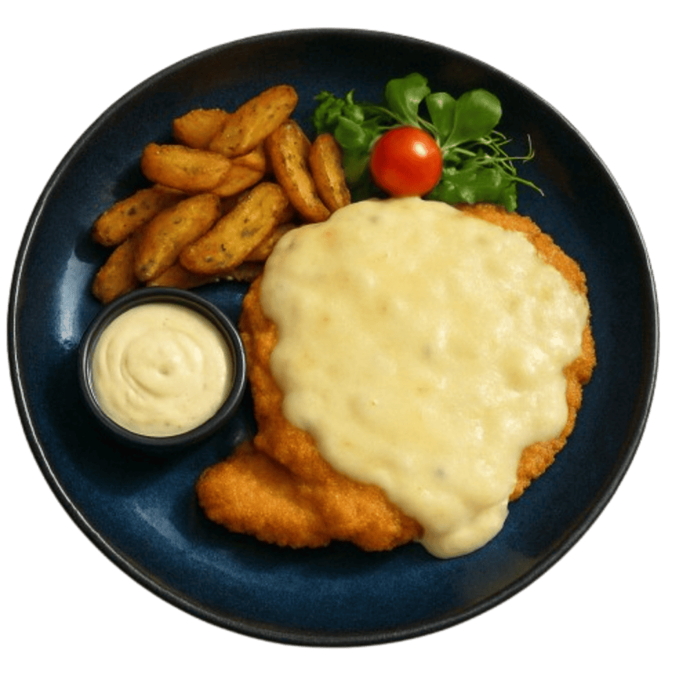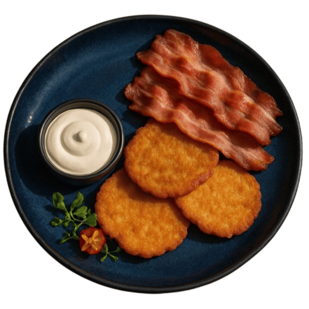 Karbonāde, bekons, marinēts gurķis un siers (Attēlā ir informatīvs raksturs)
