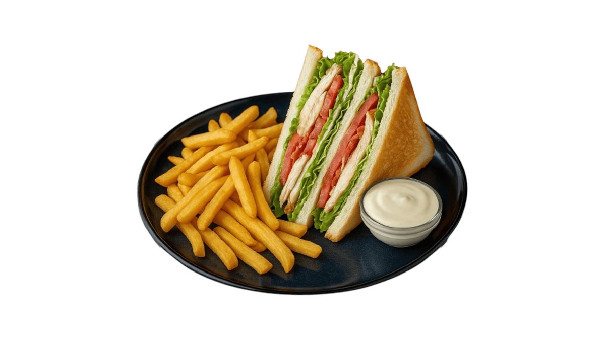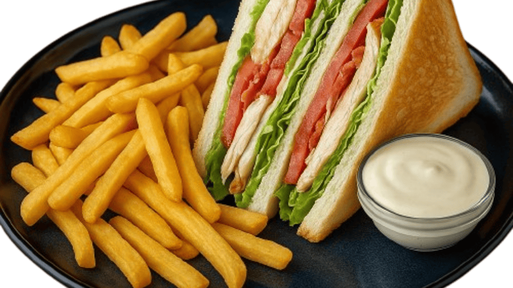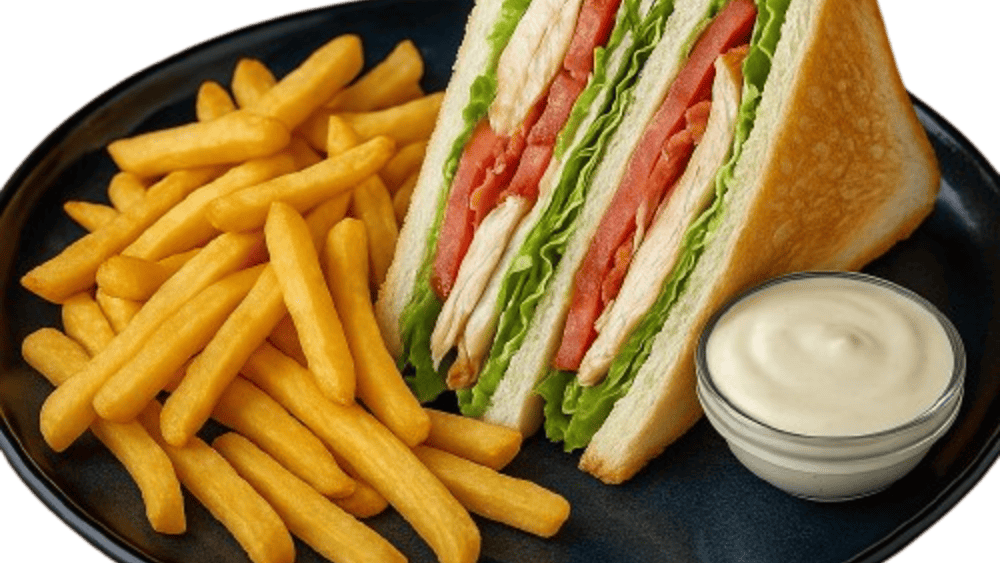 Sendvičs ar šķiņķi un kartupeļiem frī