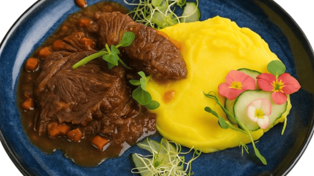 Liellopu vaigi sarkanvīna mērcē ar biezeni