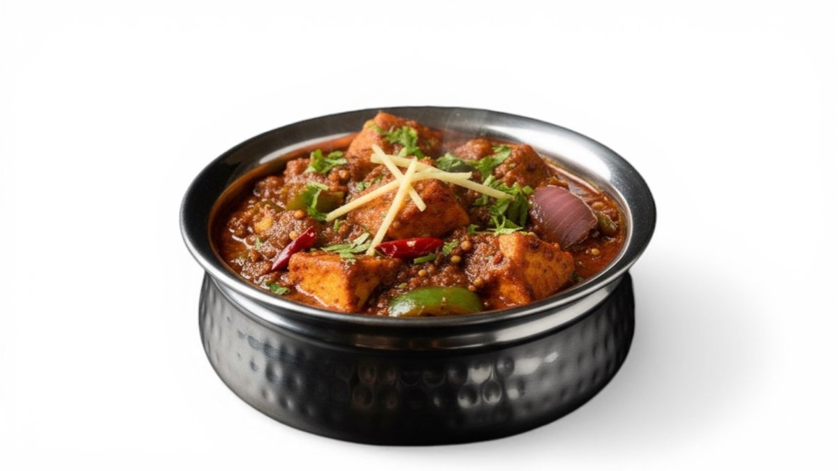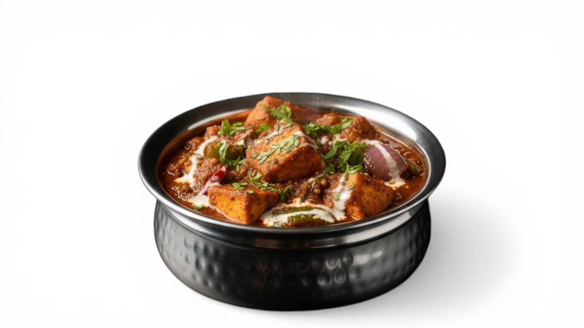 Panīrs ar papriku tomātu mērcē ar tradicionālām kadai garšvielām