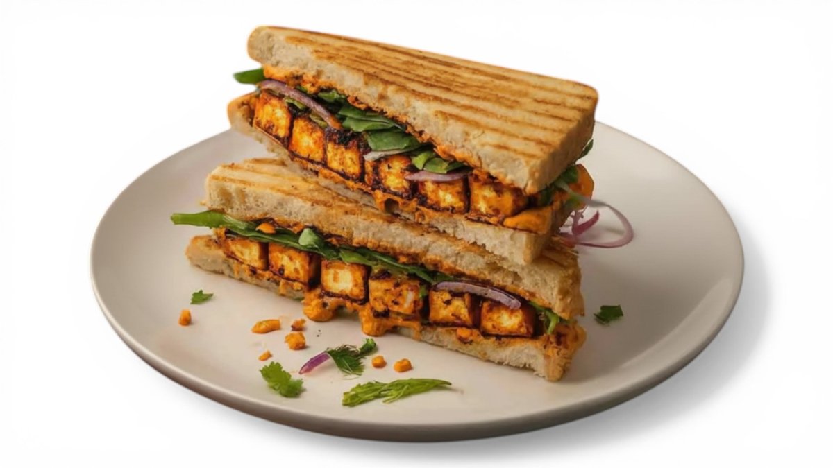 Karsta grilēta sviestmaize ar svaigiem dārzeņiem, kūstošu sieru un maigām garšvielām