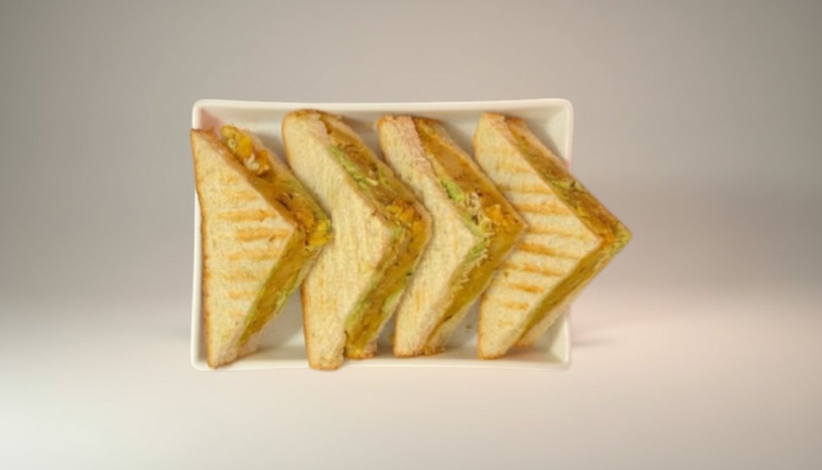 Sātīga sviestmaize ar pikantu kartupeļu pildījumu un kausētu sieru
