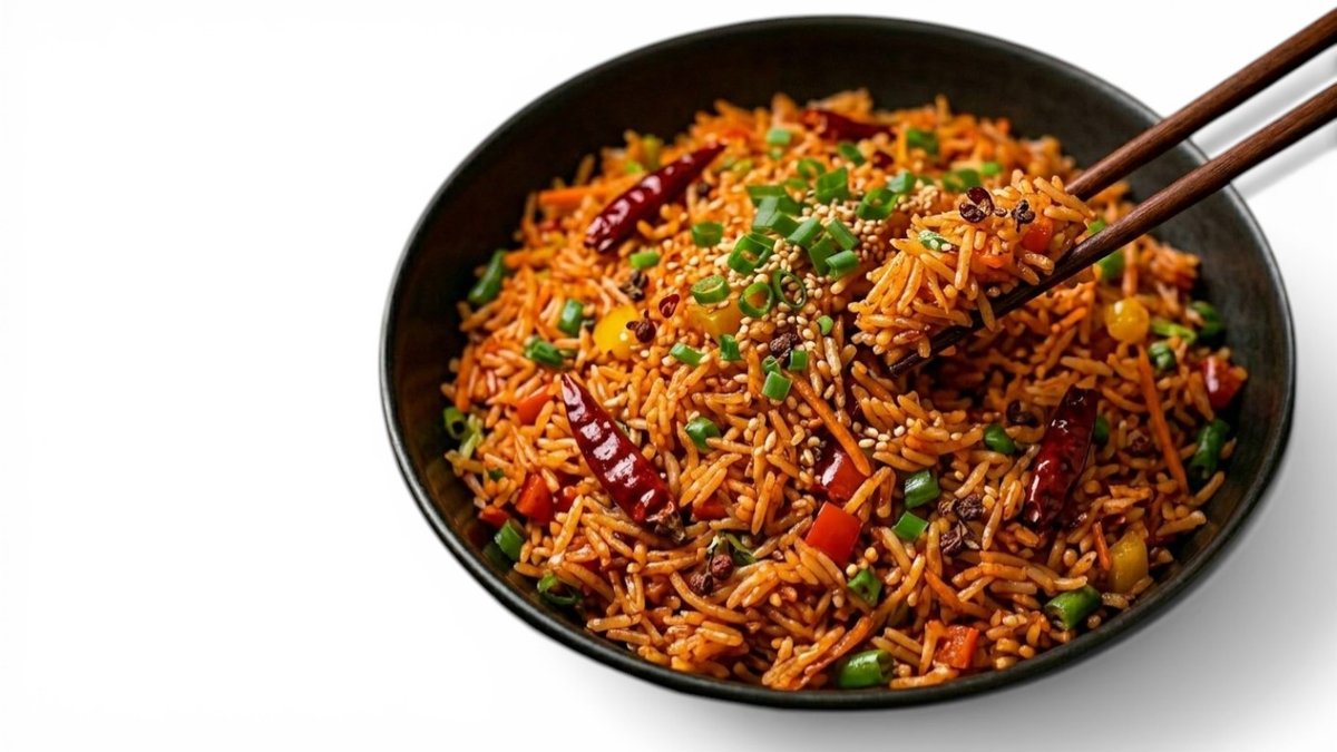 Pikanti basmati rīsi ar dārzeņiem Šezuānas mērcē