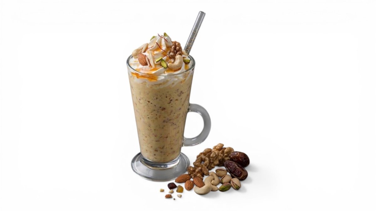 Bagātīgs piena kokteilis ar žāvētiem augļiem un riekstiem
