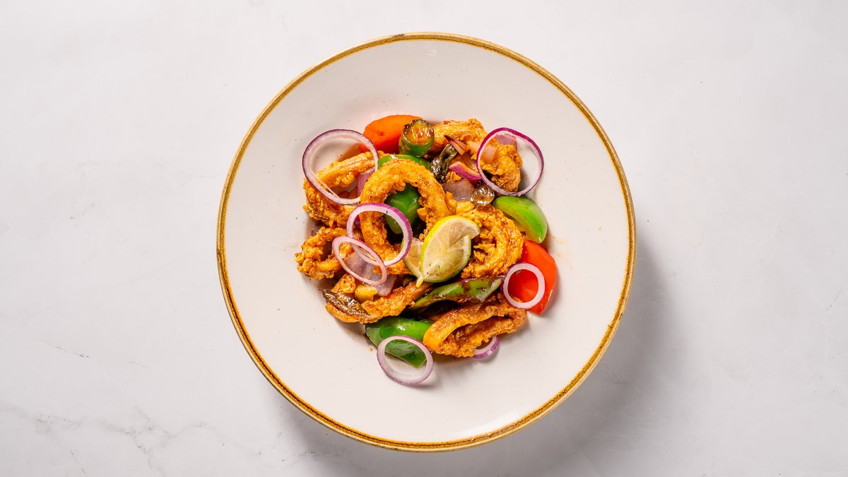 Kraukšķīga sēpija saldā un pikantā sviesta mērcē ar banānu papriku, sīpoliem, ingveru un ķiplokiem. Viens no Šrilankas ielu ikoniskākajiem ēdieniem.