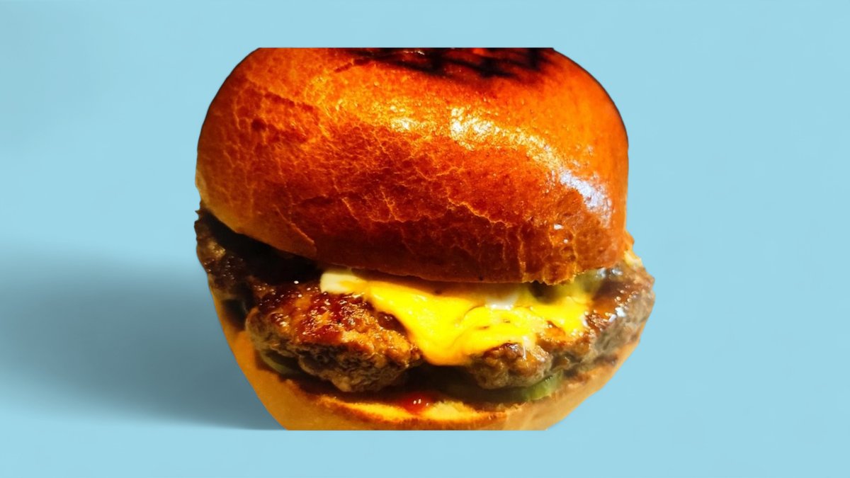 Burger maize, svaigi cepta, sulīga liellopa gaļa, čedaras siers, marinēti gurķi, kečups, sinepes, majonēze.