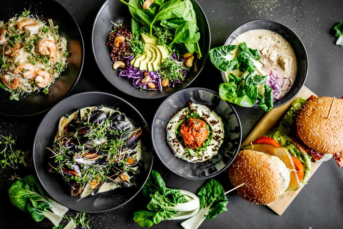 Pašu cepta maize, saulē kaltētu tomātu pesto, hummus, sēņu pastēte, burkānu sviests, tomātu salsa, olives