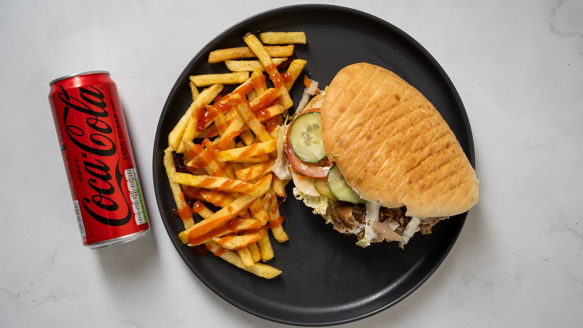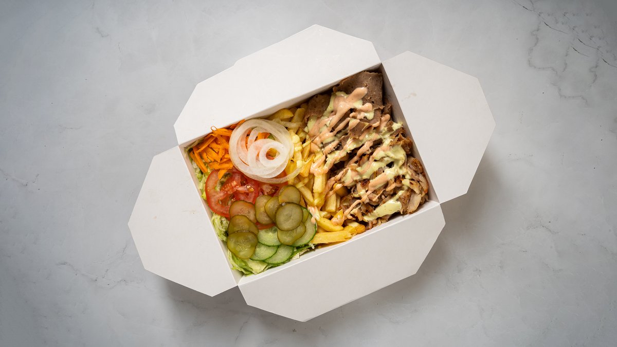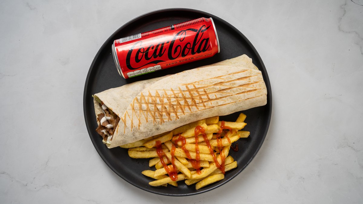 Doner kebaba komplekts (Lielais)+ Dzēriens + Frī. Svaigi salāti, sulīga gaļa un mūsu pašu gatavotās kebaba mērces