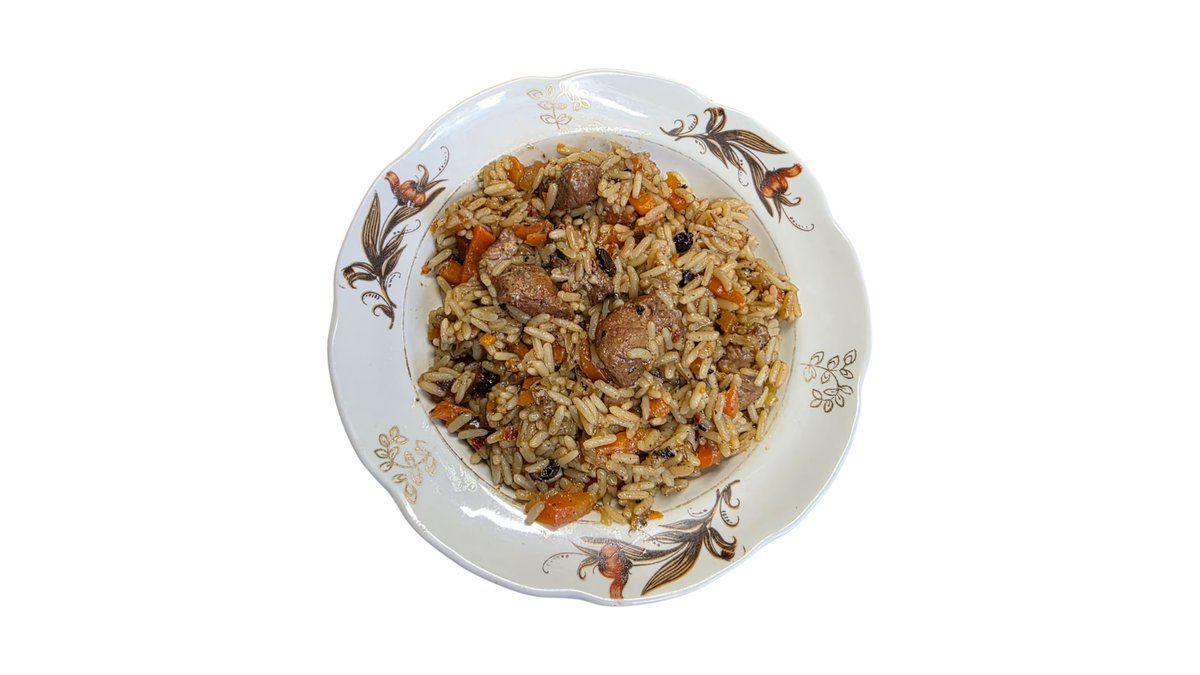 Liellopa buljons, liellopa gaļa, rīsi, burkāni, sīpoli, ķiploki, sāls, pipari