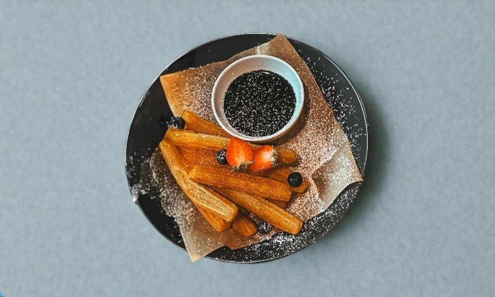 Spāņu čuross ar šokolādes mērci un ogām