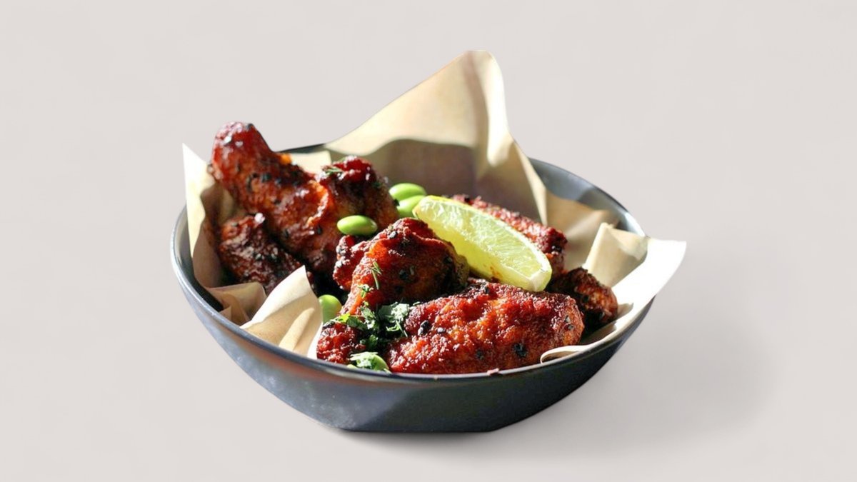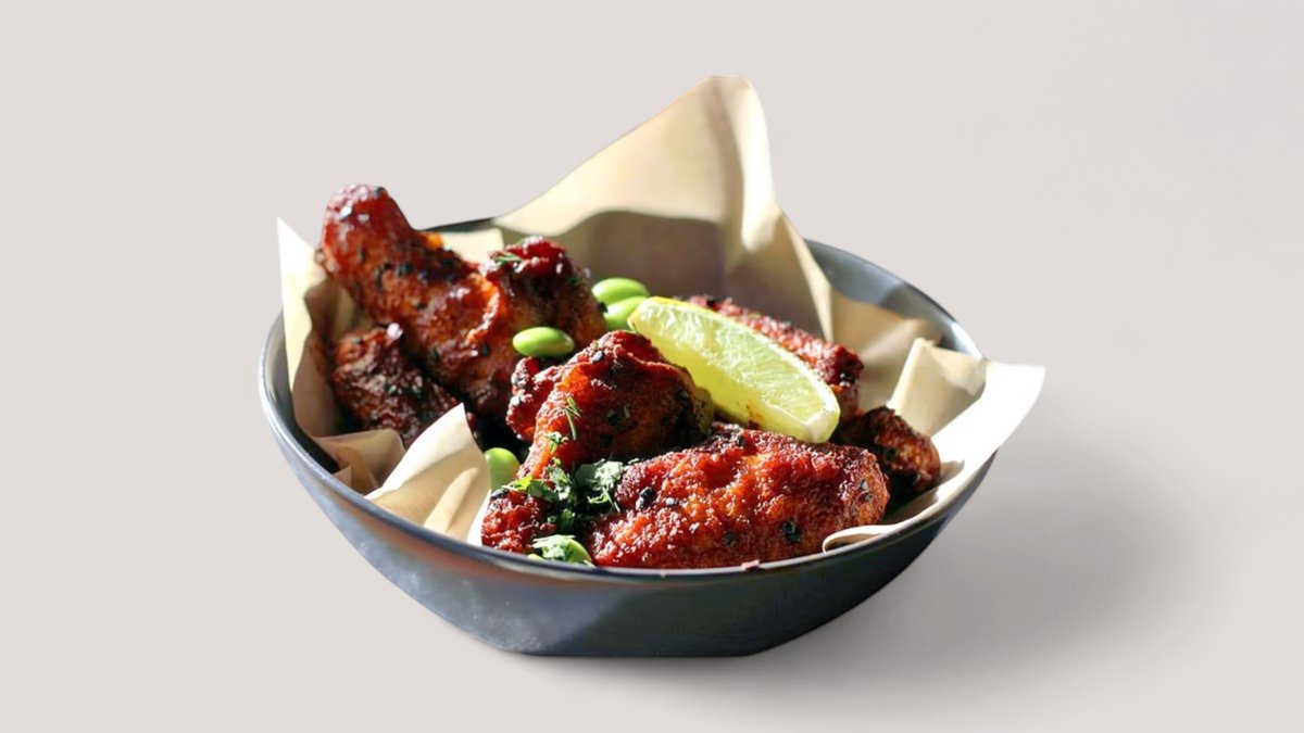 4 vistas spārniņi, 4 spring rolls, 4 kamembēra gabaliņi, 4 sīpolu gredzeni, ķiploku grauzdiņi, marinējumi un 2 mērcītes.