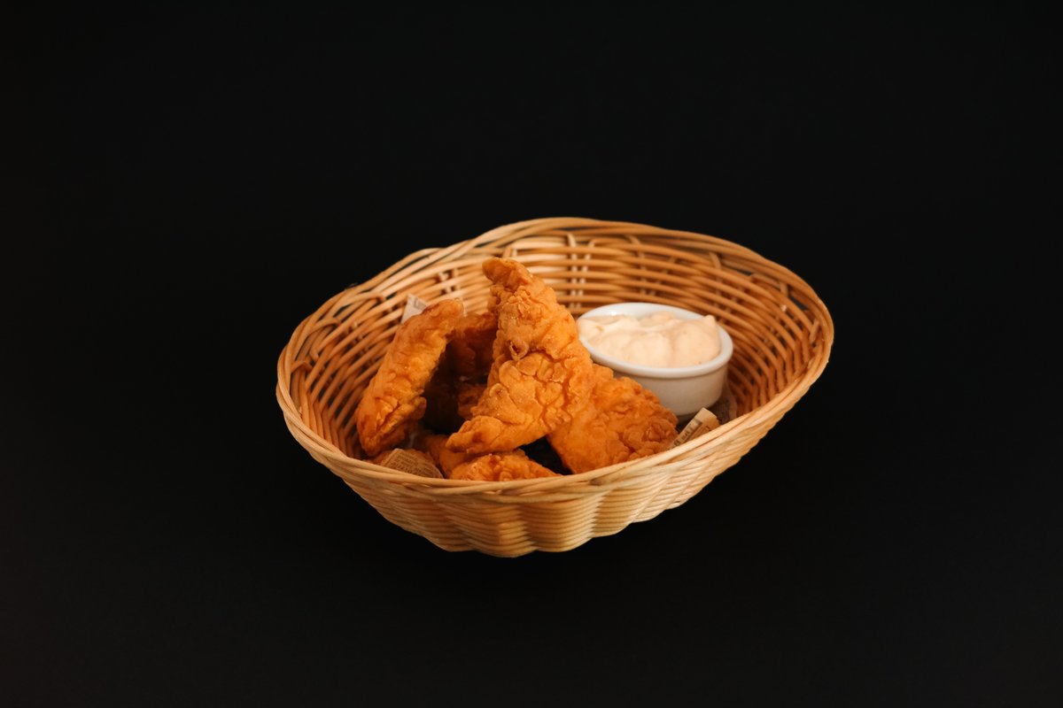 Vistas strēmeles 3 gab. ar frī kartupeļiem un čili majonēzi