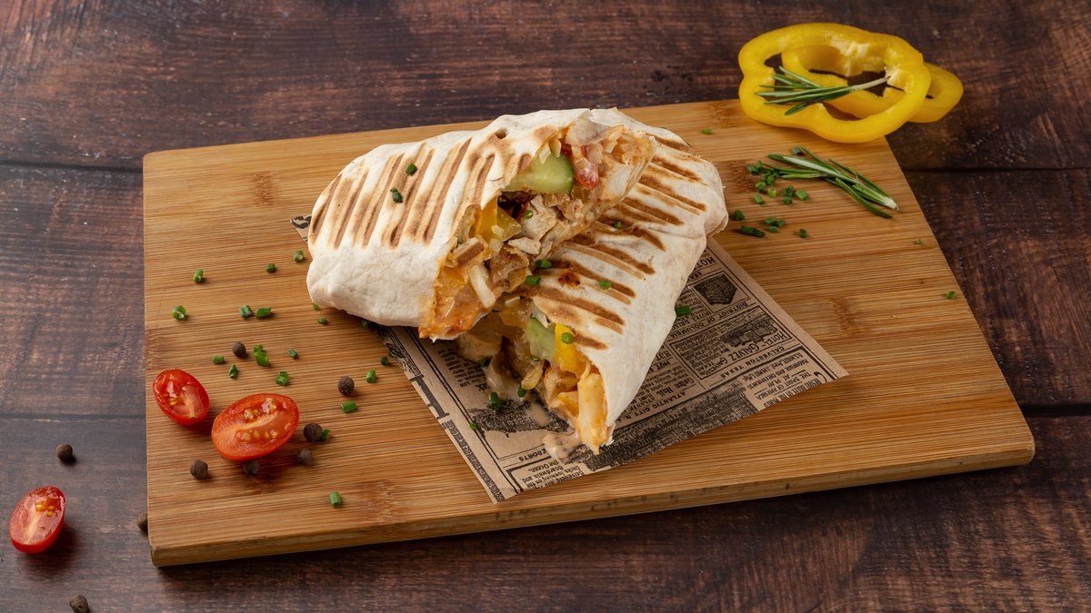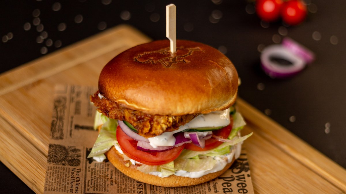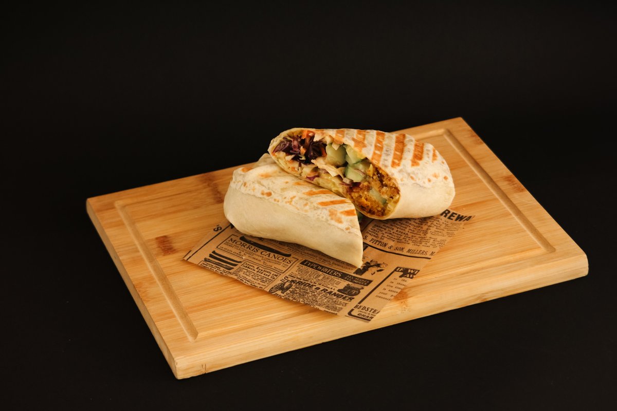 / FALAFELS, KOREJAS BURKĀNS, SVAIGS GURĶIS, TOMĀTS, LEDUS SALĀTI, VEGĀNISKA GURĶU MAJONĒZE/