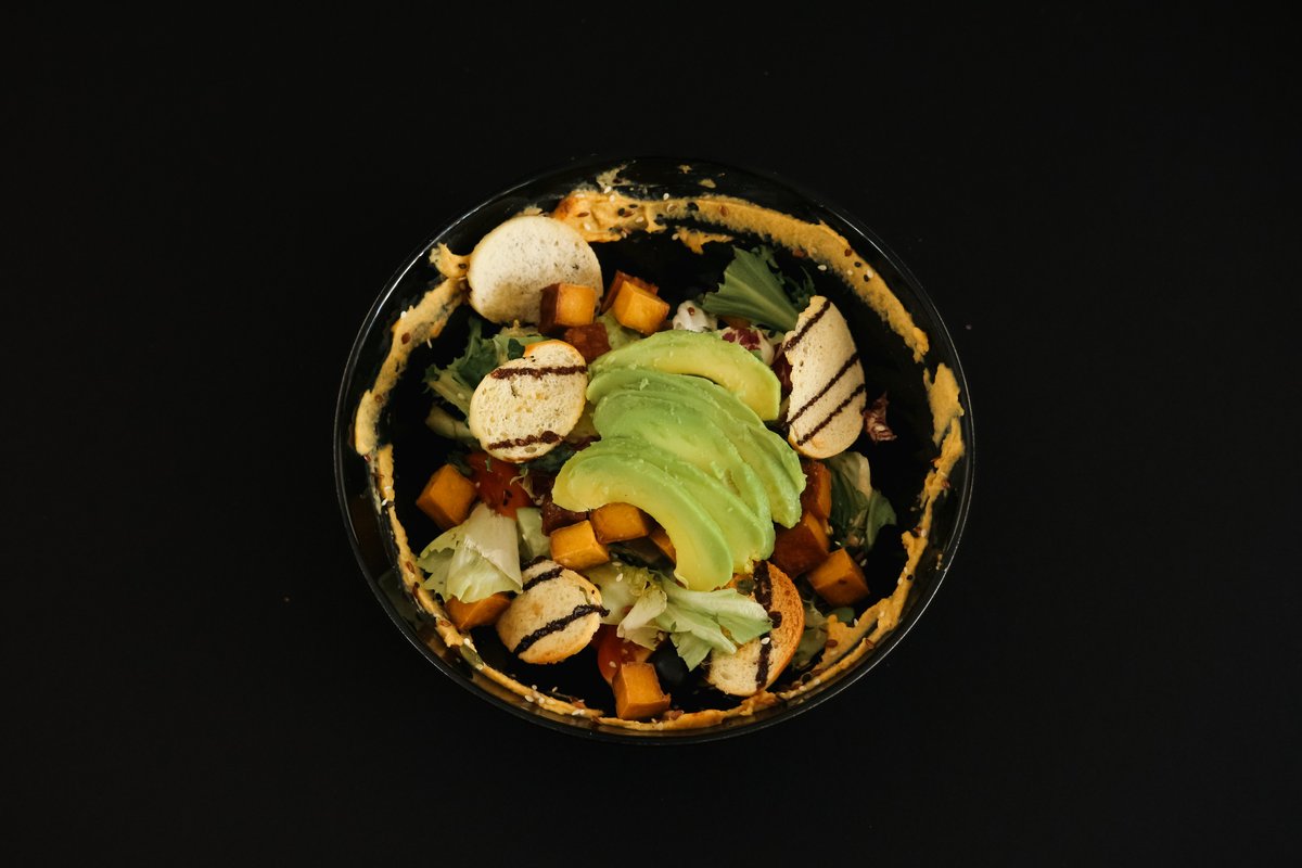 Tofu salāti ar humusu, avokado, olīvām un sēkliņām 🥦