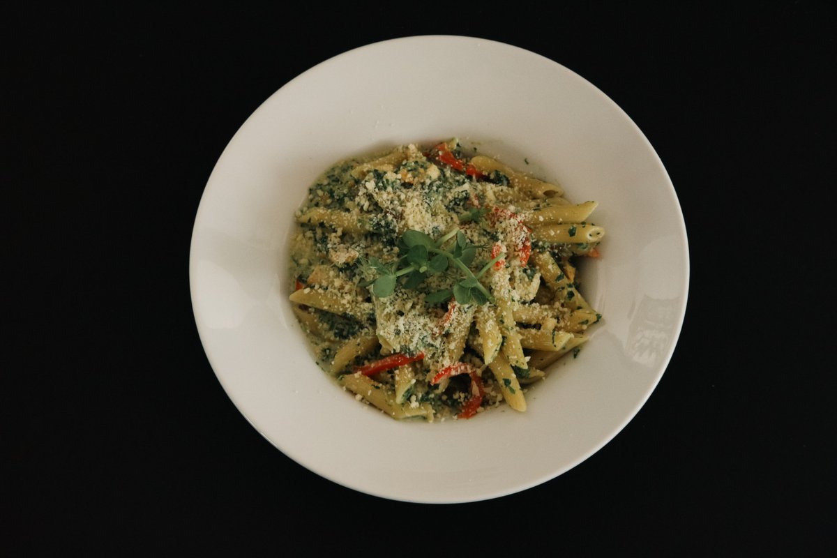 Spageti ar mocarella sieru, zaļajiem zirnīšiem un ķiršu tomātiem 🥕