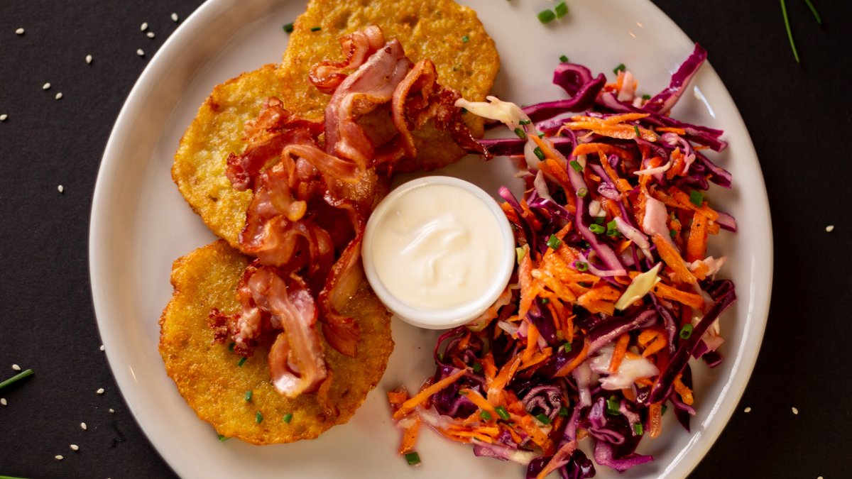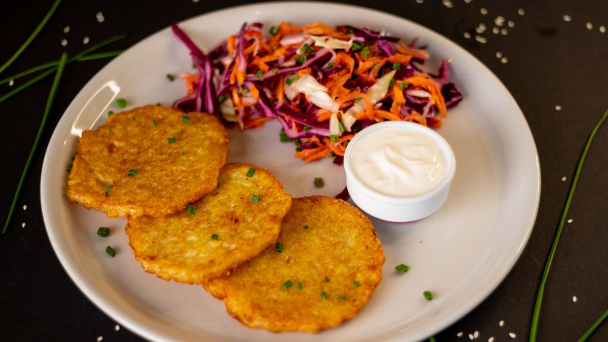 Kartupeļu pankūkas ar ceptiem šampinjoniem un vegānisko majonēzi 🥦