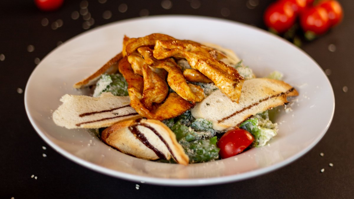 Cēzara salāti ar vistas fileju un ķiršu tomātiem
