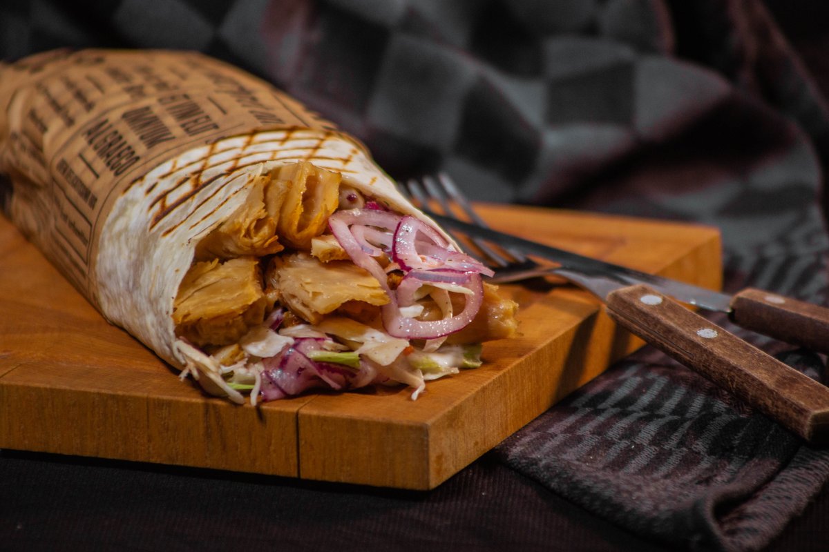 Liellopu gaļa Vistas gaļa Chilli majonēze Fetaki Lavašs Svaigs tomāts Marinēts zilais sīpols SALĀTI-svaigs kāposts, svaigs burkāns, svaiga paprika, svaigs gurķis