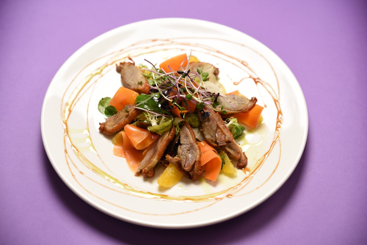 Silts pīles confit, marinēti gurķi, burkāni, fenhelis, apelsīnu filejas un cidoniju mērce (10; 12)