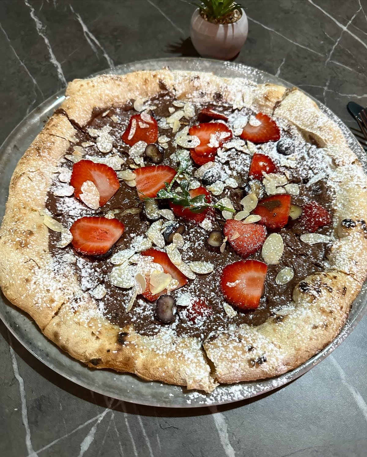 All pizzas are made with 00 type fine Italian flour, wheat flour rich in protein, contains much less gluten than regular wheat flour. The pizzas are baked in a wood-fired oven at 400 degrees, with puffy, crispy edges.