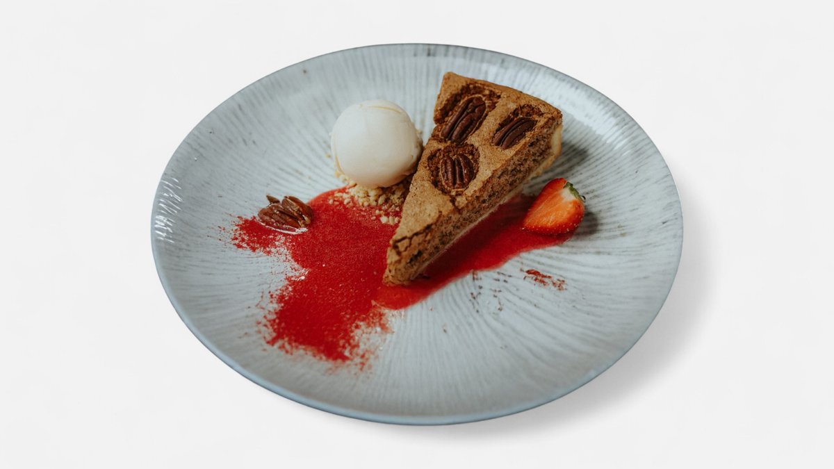 silta sāļās karameles mērce, pekanriekstu pralinē, griljāžas saldējums