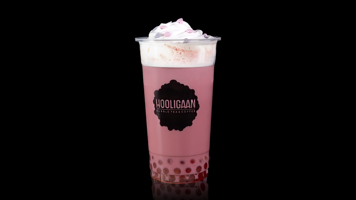 Granātābolu bobas, Tapioka, Taro, Zemeņu sīrups, Vaniļas sīrups, Piens, Melnā tēja, Ledus