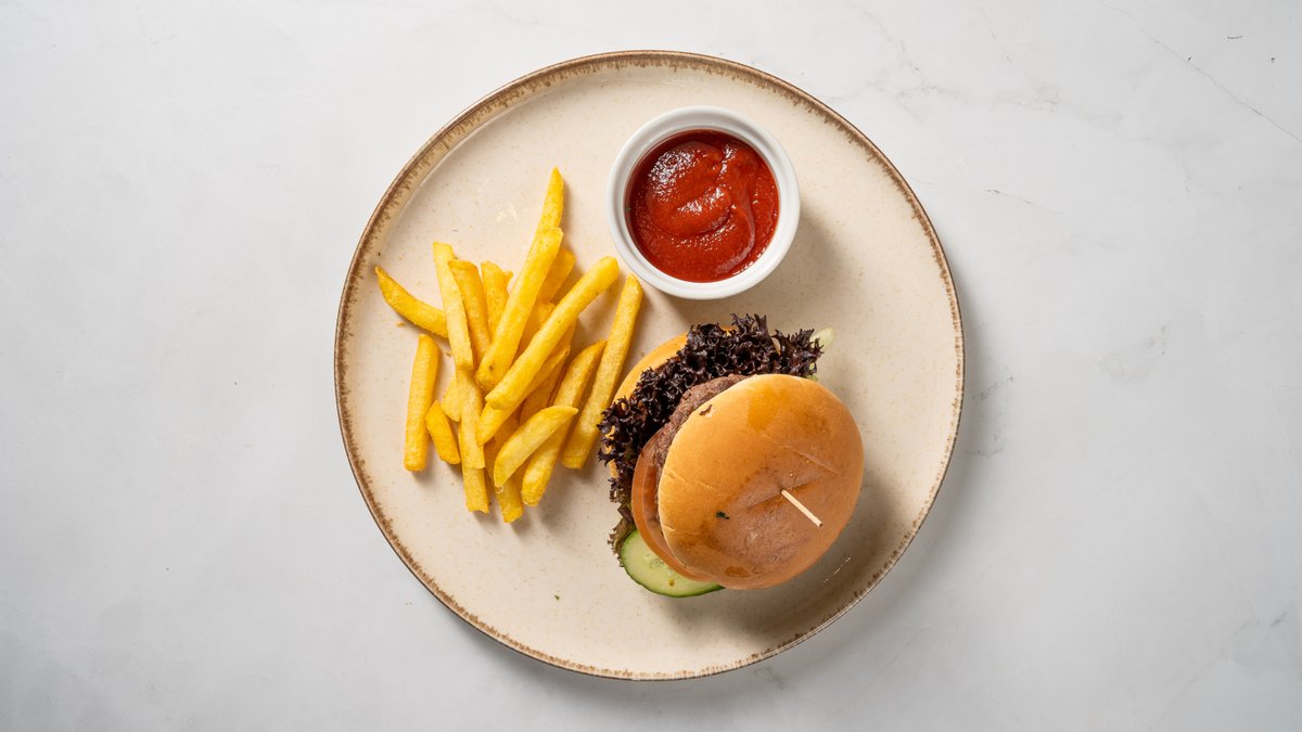 Bērnu burgers + fri ar kečupu vai majonēzi