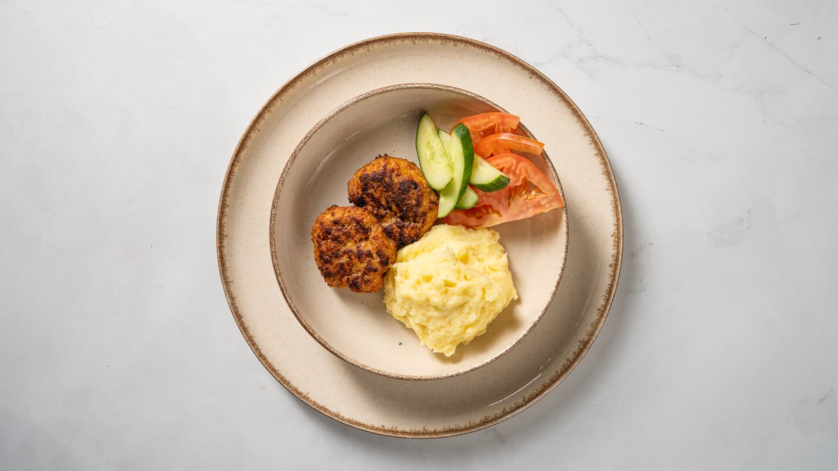 Vistas kolete ar kartupeļu biezeni un svaigiem dārzeņiem