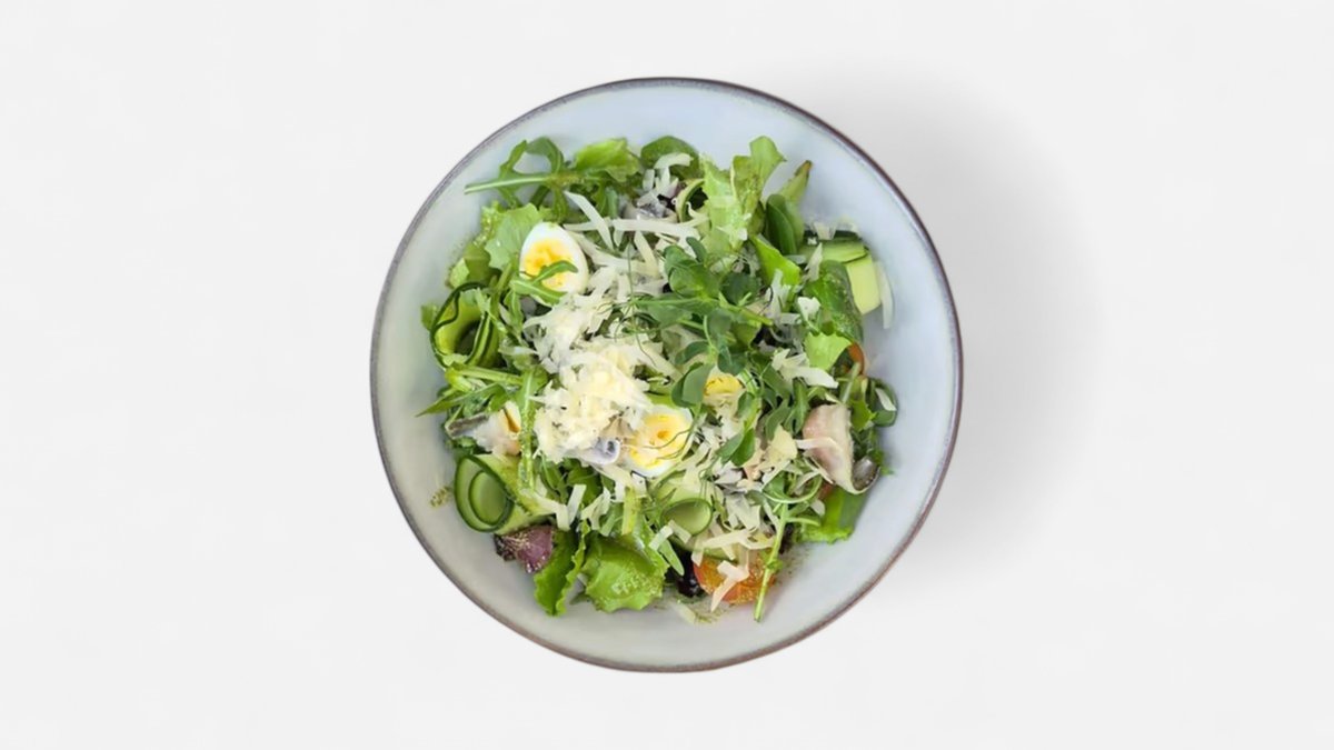 Lapu salāti ar brētliņu filejām un vārītu olu