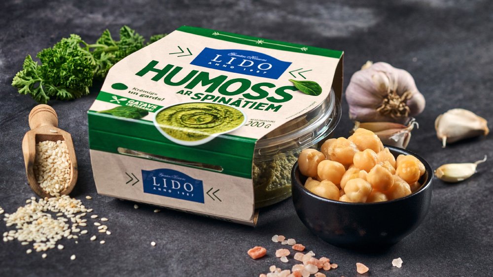 Zirņi turku (turku zirņi, ūdens, sāls), spinātu pasta (15.3%) (spināti), sēklas SEZAMA, rapšu eļļa, eļļa olīvu, etiķis baltvīna (vīns, kālija metabisulfīts, satur SULFĪTUS), sidra etiķa aromatizētājs (konservants:nātrija acetāts, ciete, sāls, rapšu eļļa, piedeva: silīcija dioksīds), sāls, ķiploki, cukurs, kumīns, melnie pipari