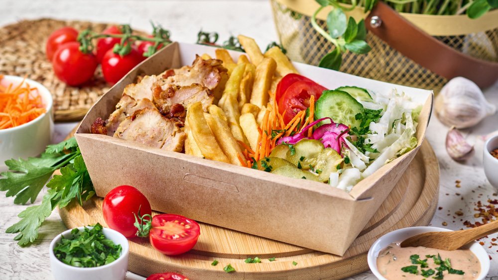 Kebaba box ar cāļa gaļu un ķiploku mērci L izm.