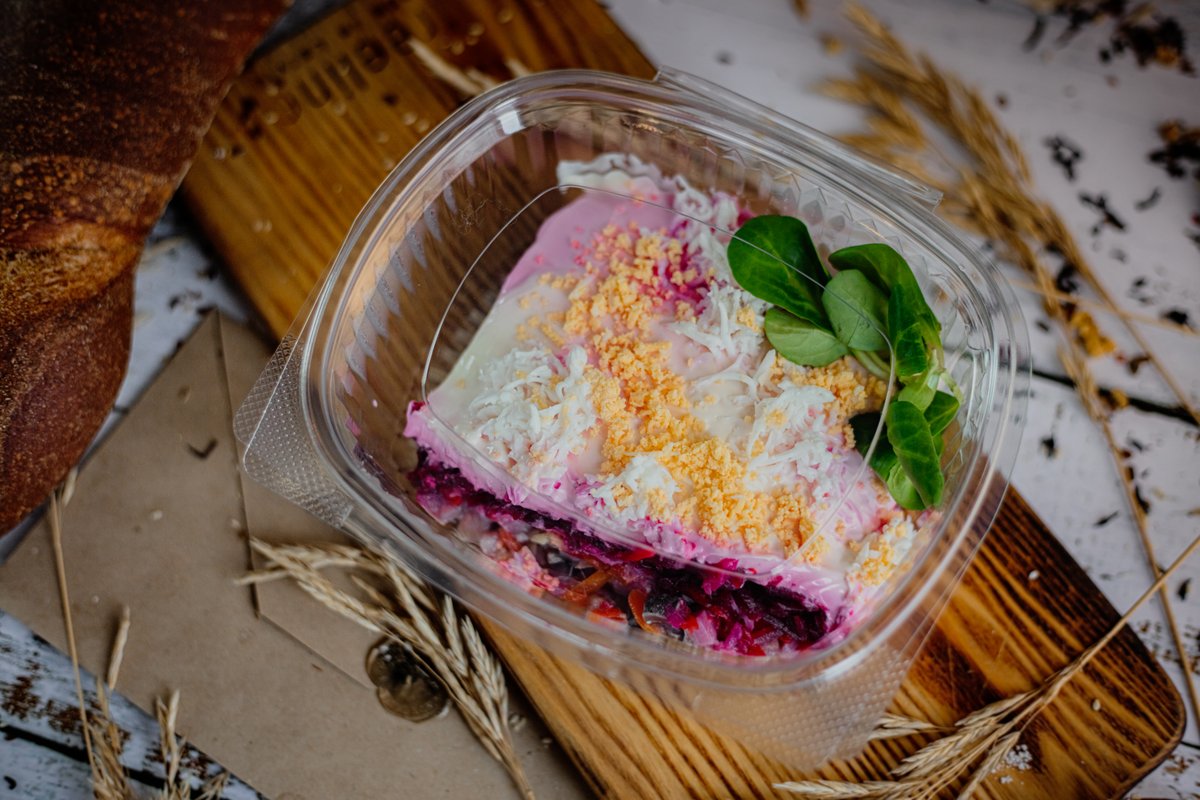 Kartupeļi, burkāni, bietes, gurķi marinēti, rapšu eļļa, konservēti zirnīši , sāls, pipari, sinepes