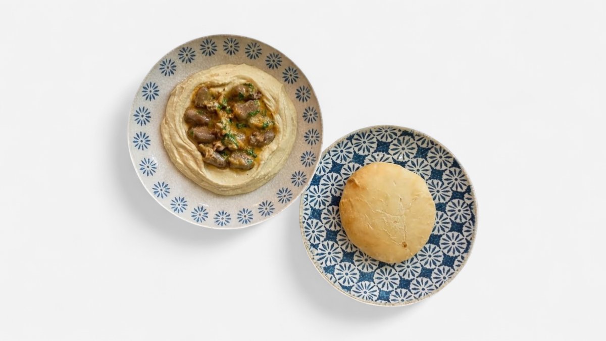 Humuss ar vistas sirsniņām krēmīgā mērcē un pitas maize