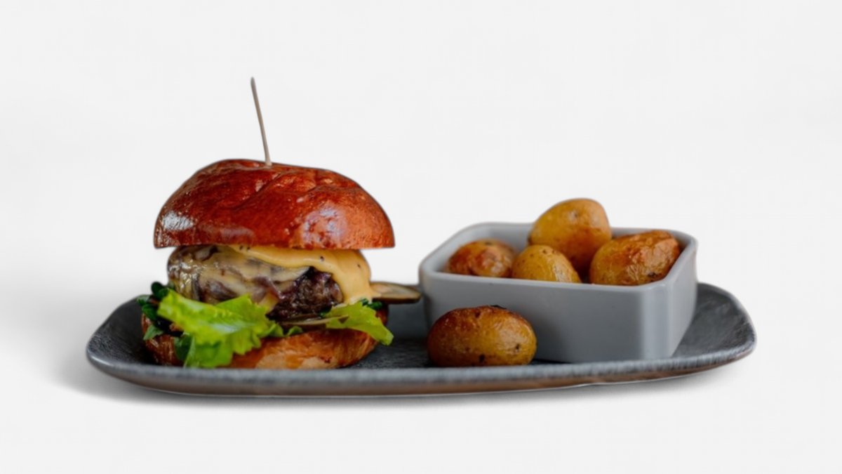 Vēršacis, bekons, cisiņi, pupiņas tomātu mērce, grauzdēta tostermaizes