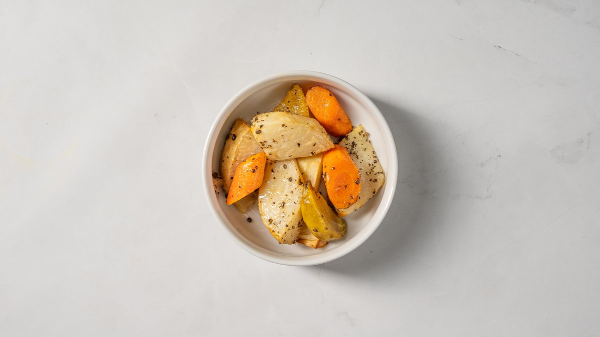 Krāsni cepti sakņu dārzeņi