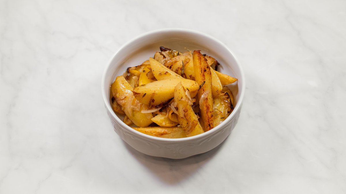 Krāsni cepti kartupeļi ar sīpoliem un citronu
