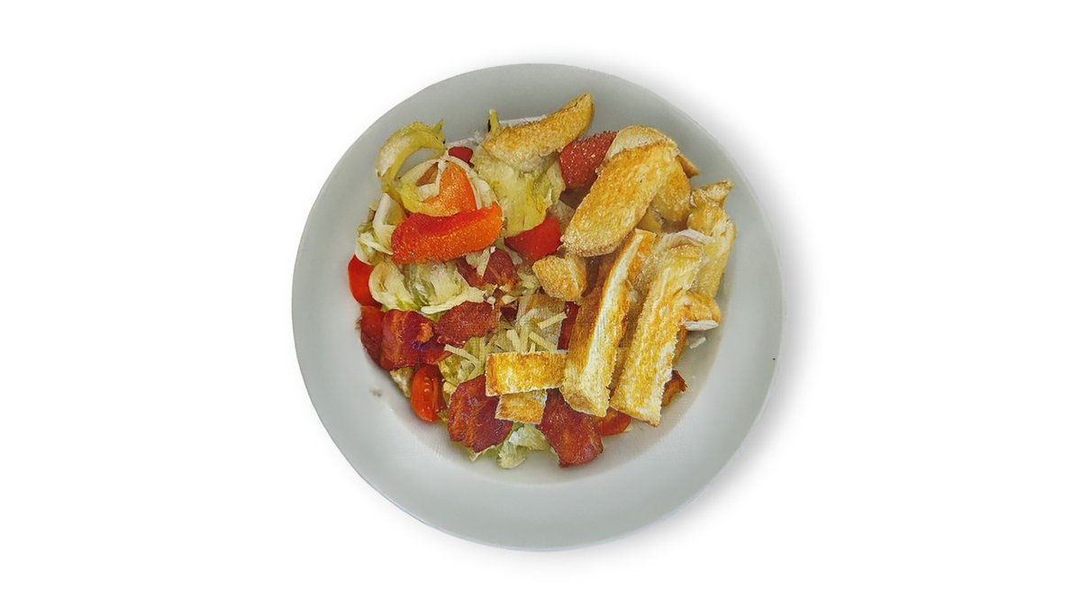 (romiešu sal., cherry tomātiņi, bekons, cietais siers, grauzdiņi, cēzara mērce