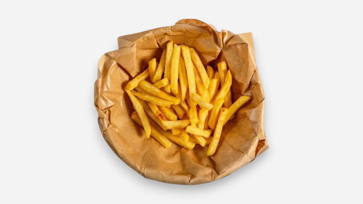 Liellopa gaļas kotlete,siers. Cepta maizīte, salātlapa, tomāts, marinēti sīpoli, marinēts gurķis, īpaši asa mērcīte, frī kartupeļi