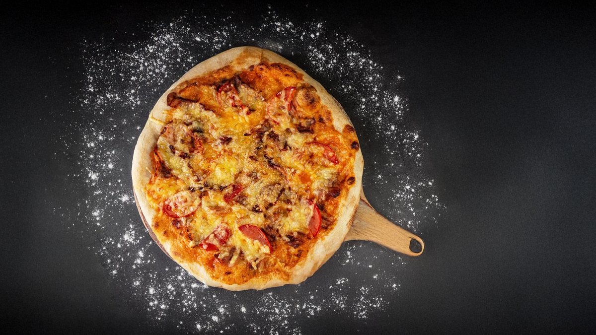 sastāvdaļas - mīkla pēc kaukāzu receptiem, siers 2 veidi, salami, marinēti gurķi, picas mērce