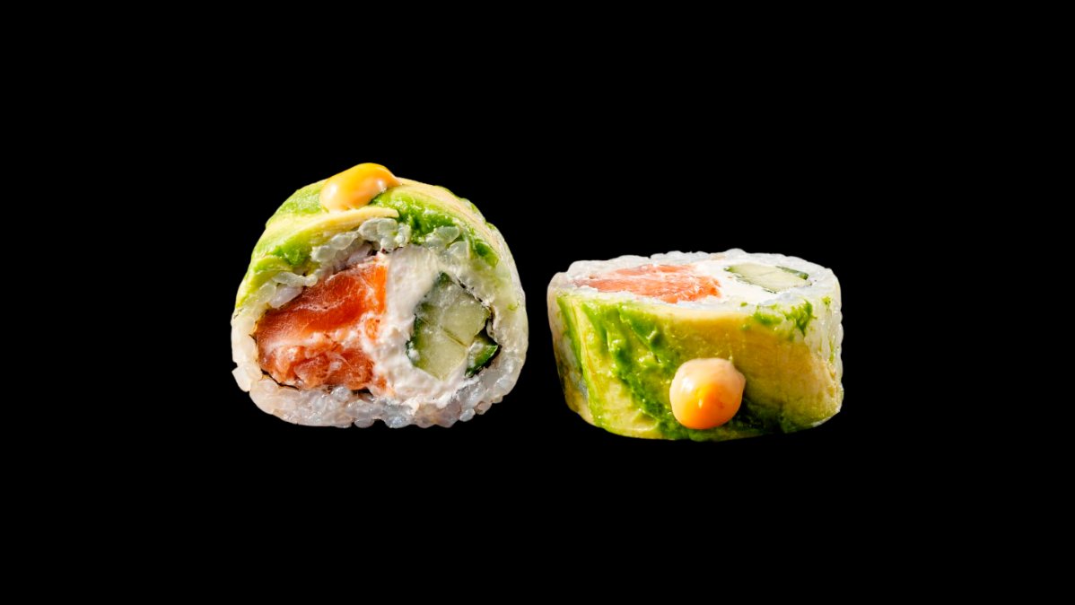 8 gab, avokado, Filadelfijas siers, gurķi, jūraszāles, paprika, salāti, tomāti, Indijas riekstu mērce Alergēni: glutēns, soja, laktoze, olas, selerija, sezams