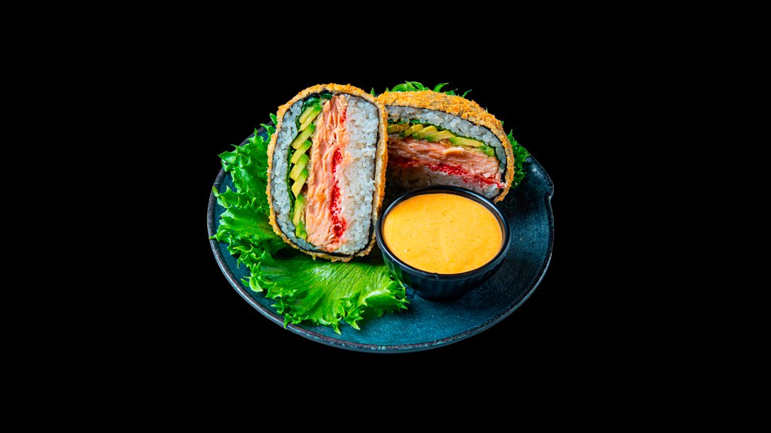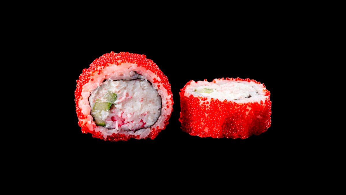 8 gab, lasis, sniega krabis, karstā mērce, avokado, karalisko garneļu tempura, unagi mērce Alergēni: glutēns, vēžveidīgie, olas, zivis, soja, selerijas, sinepes, sezams
