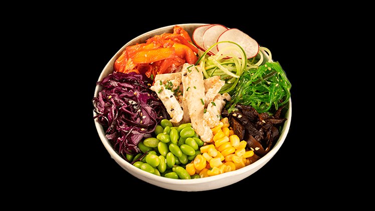 Tofu ar dillēm un pētersīļiem, kanpjo, edamami pupiņas, avokado, saldā kukurūza, wakame salāti, sarkanie kāposti, gurķi, šitaki sēnes, redīsi, sezama sēklas, nori lapa Alergēni: glutēns, soja, sezams, lupīna