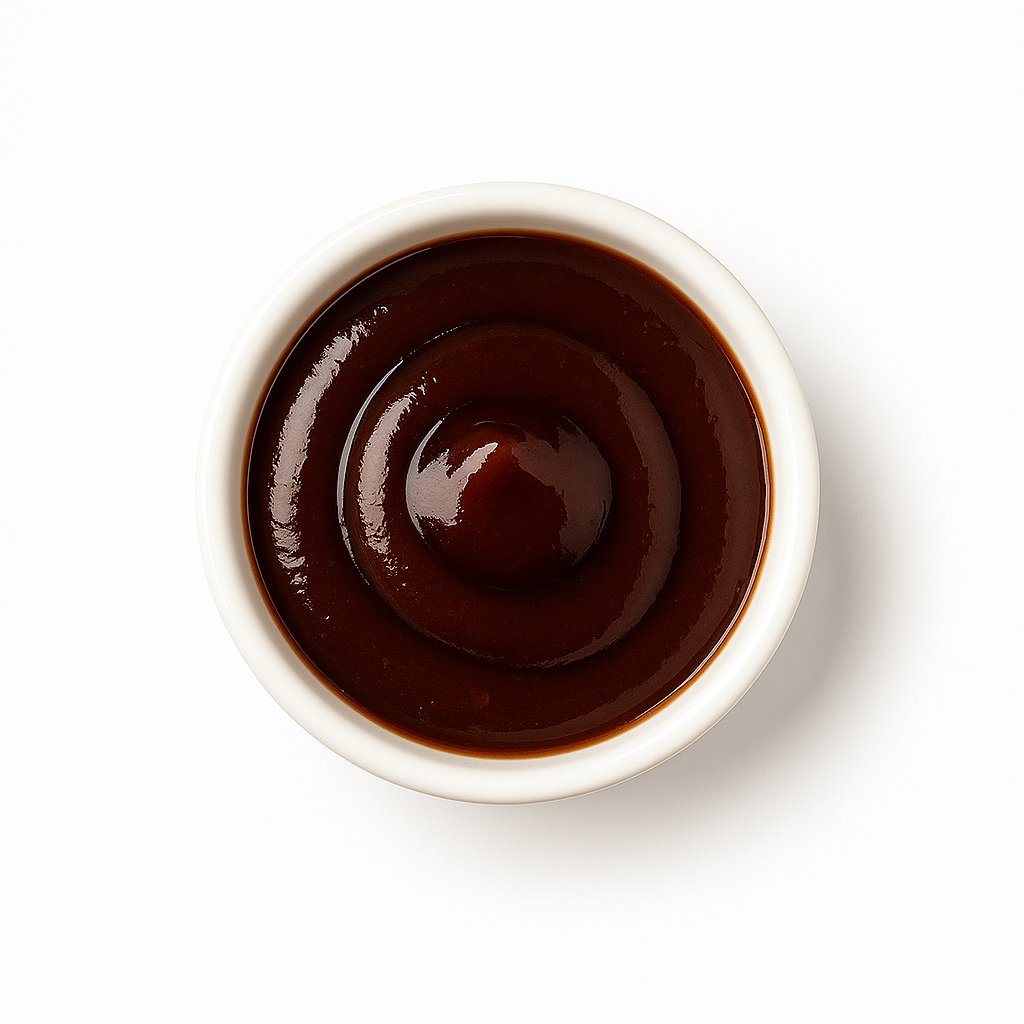 Brioša bulciņa, salātu lapas, sīpoli, tomāti, marinēti gurķi, čedaras siers, kraukšķīgie sīpoli, liellopa gaļas kotlete, bekons, BBQ mērce