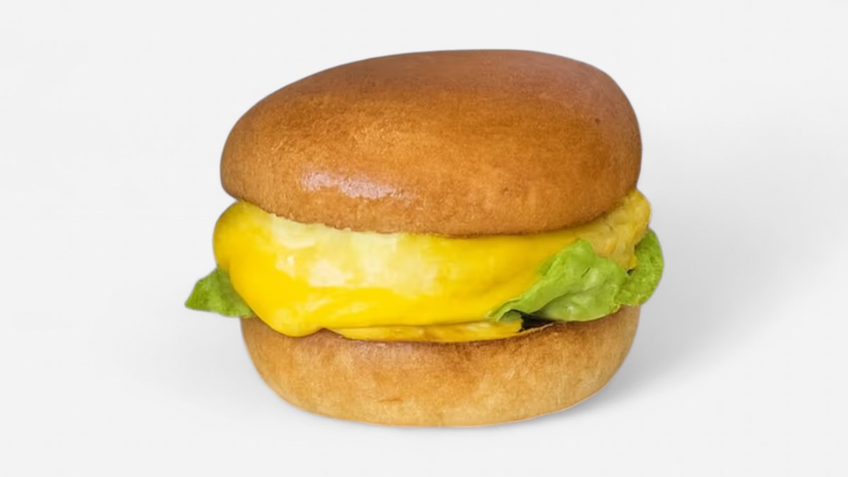 Brioša bulciņa, salātu lapas, tomāti, marinēti gurķi, čedaras siers, sīpoli, gurķu mērce, vistas gaļas kotlete