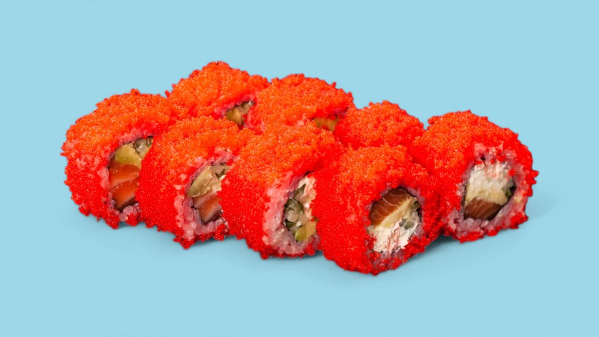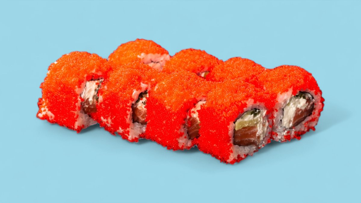 8 gab - Rīsi,sniega krabis, avokado, gurķis, tobiko,karstā mērce,krējuma siers