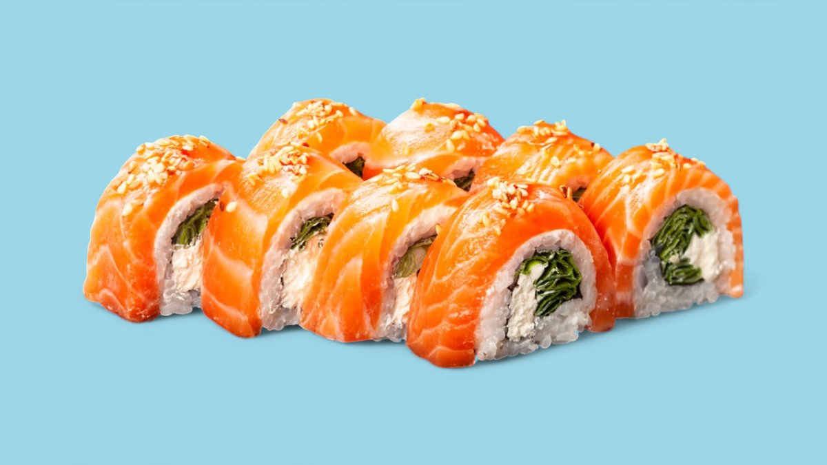 Krējuma siers, Lasis, garneles, Avokado, Masago ikri, Siera cepurīte